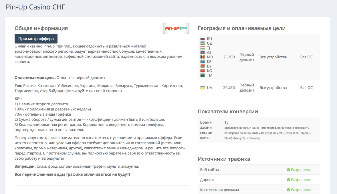 В карточке оффера можно ознакомиться со всей необходимой информацией по работе с оффером: