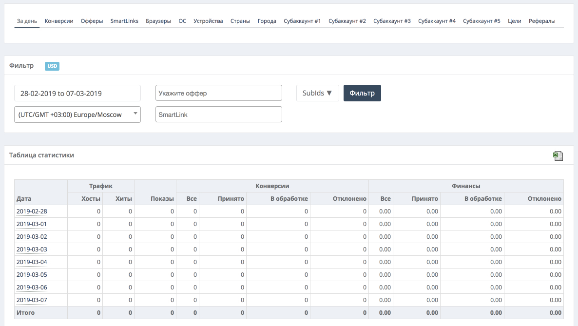 В партнерке реализована детальная статистика в режиме онлайн, со всеми необходимыми параметрами для оптимизации Ваших рекламных компаний.