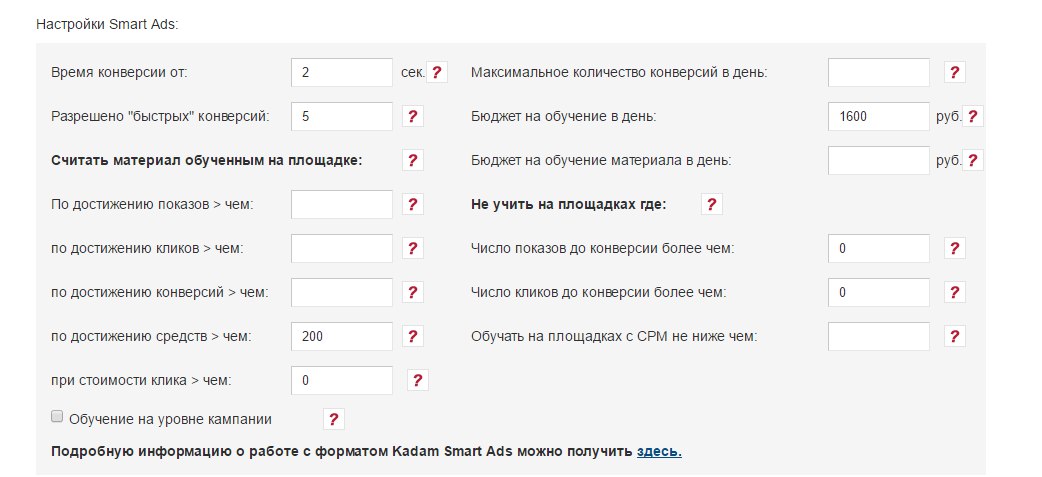 Была создана кампания. Цену за действие поставил 250 рублей. Почти половина от цены лида (оптимальное значение для KSA).