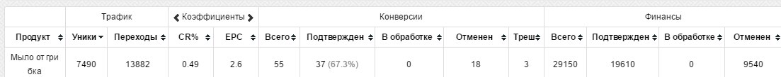 По своему опыту хорошо понял, что в Кадаме неплохо идут офферы по тематике “Здоровье” и поэтому решил потестить один из них. На глаза попался оффер от M-1 Shop - “Мыло от грибка”. Выплата за лид в 530 рублей при цене 990 рублей, показалось очень даже ничего.